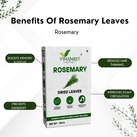 Vinamrit Rosemary Leaves | 100% Pure & Natural | Promotes Hair Growth, Strength & Scalp Health | 100g Pack | Ayurvedic Herbal Leaves for Strong & Healthy Hair Sale