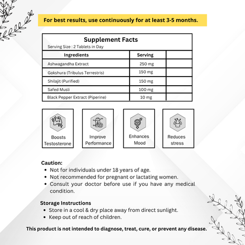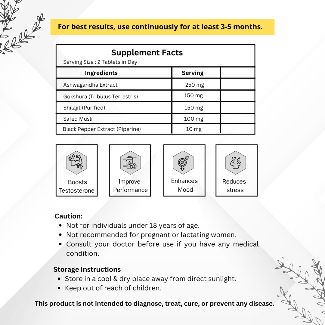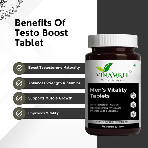 Vinamrit Men’s Vitality Tablet are designed to harness the powerful benefits of Withania Somnifera (Ashwagandha), one of nature’s most revered adaptogenic herbs. Known for its ability to help the body adapt to stress, Ashwagandha promotes balance, resilience, and overall well-being. Each tablet contains a potent, pure extract of Ashwagandha root, carefully formulated to deliver consistent levels of active compounds, including withanolides, the key bioactive constituents responsible for Ashwagandha’s therapeutic effects. These Testo Boost tablets offer a holistic wellness solution, supporting stress management, enhancing mental clarity, and boosting overall vitality. Regular use of Vinamrit Ashwagandha may help reduce symptoms of stress and anxiety, improve mood, and promote better sleep quality. Experience a sense of calm and well-being with every dose.